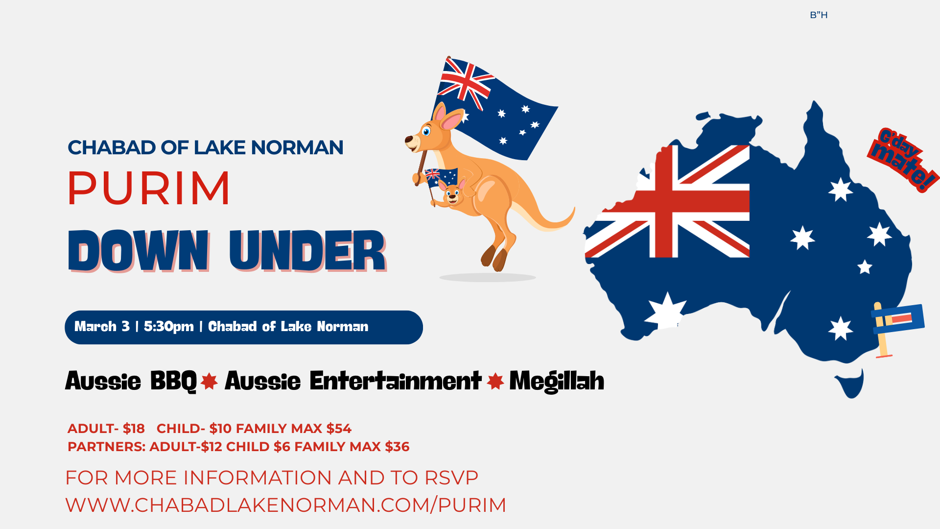 Join us for Purim Down Under (@ Chabad Lake Norman)